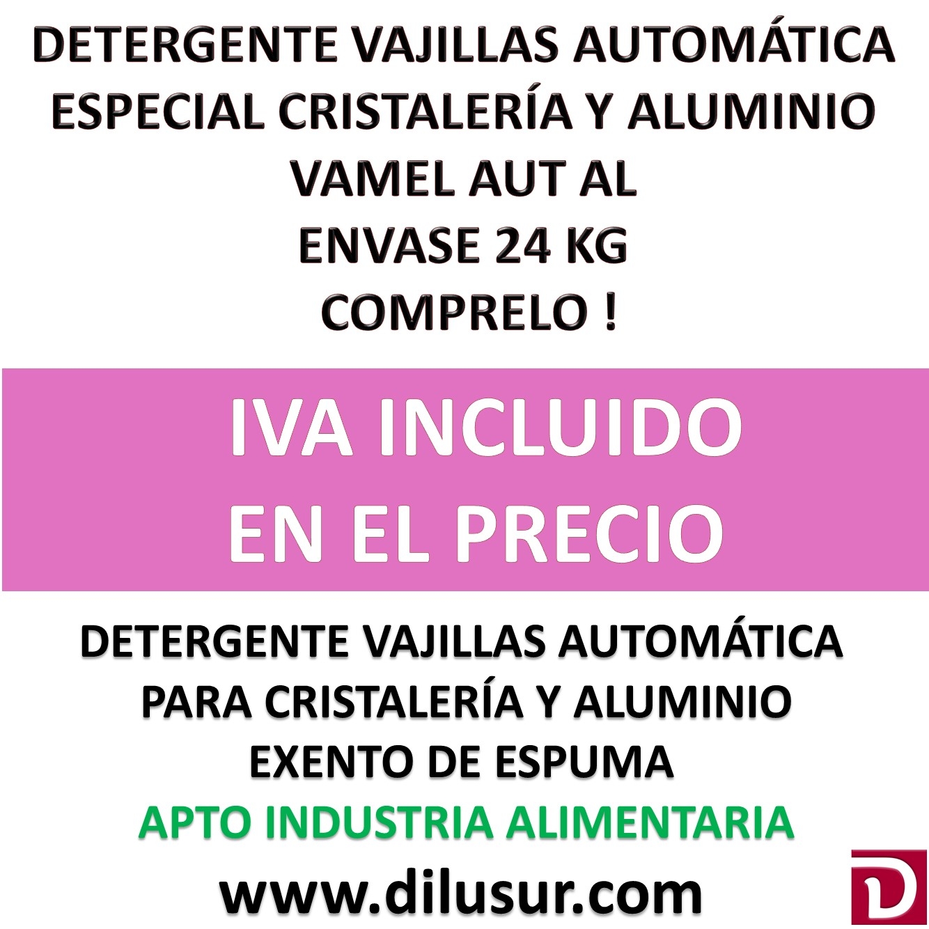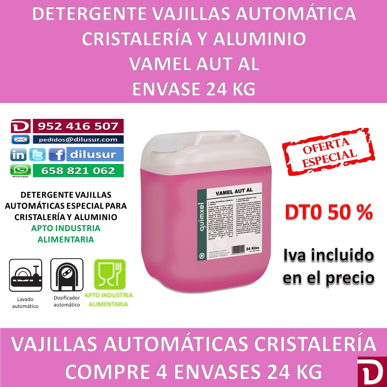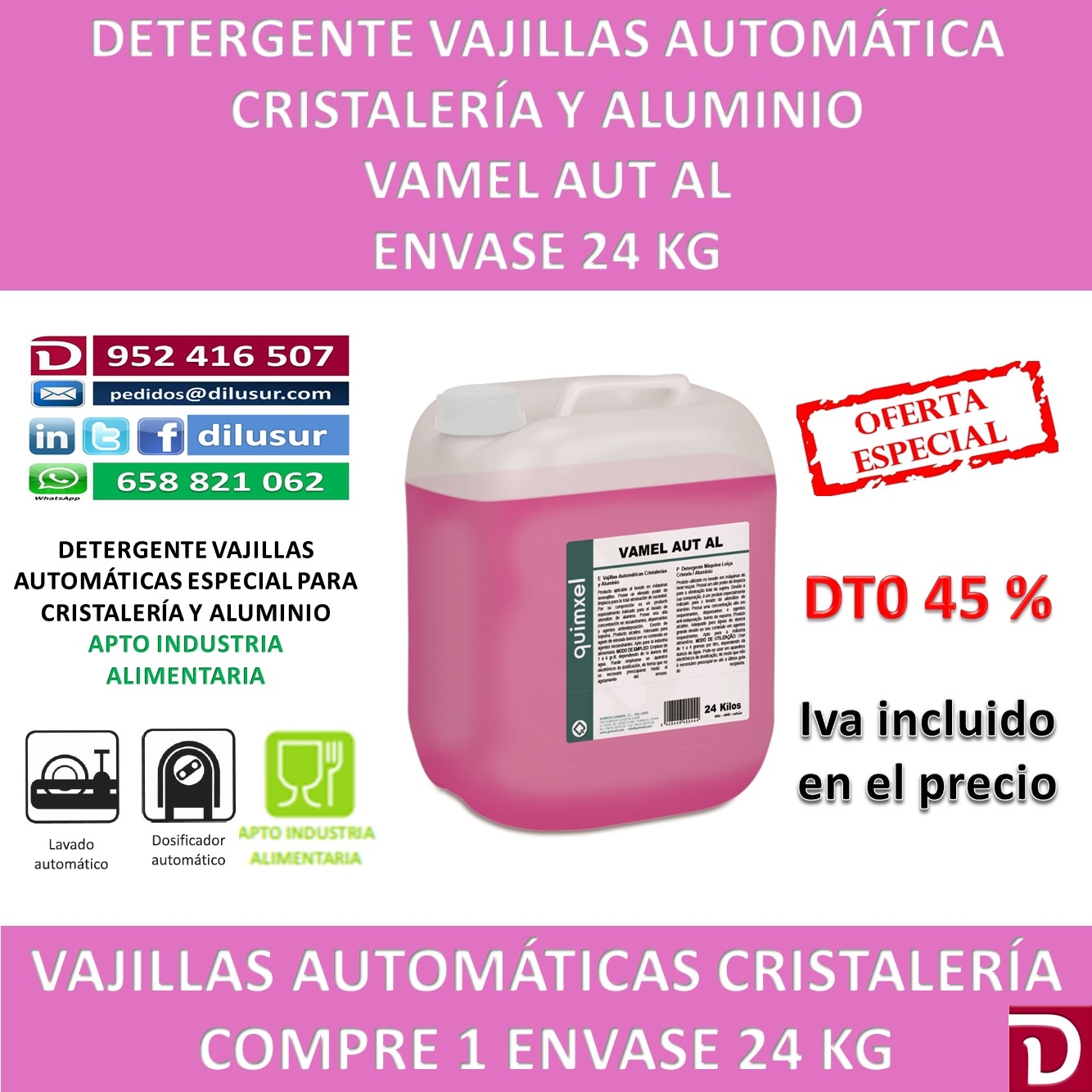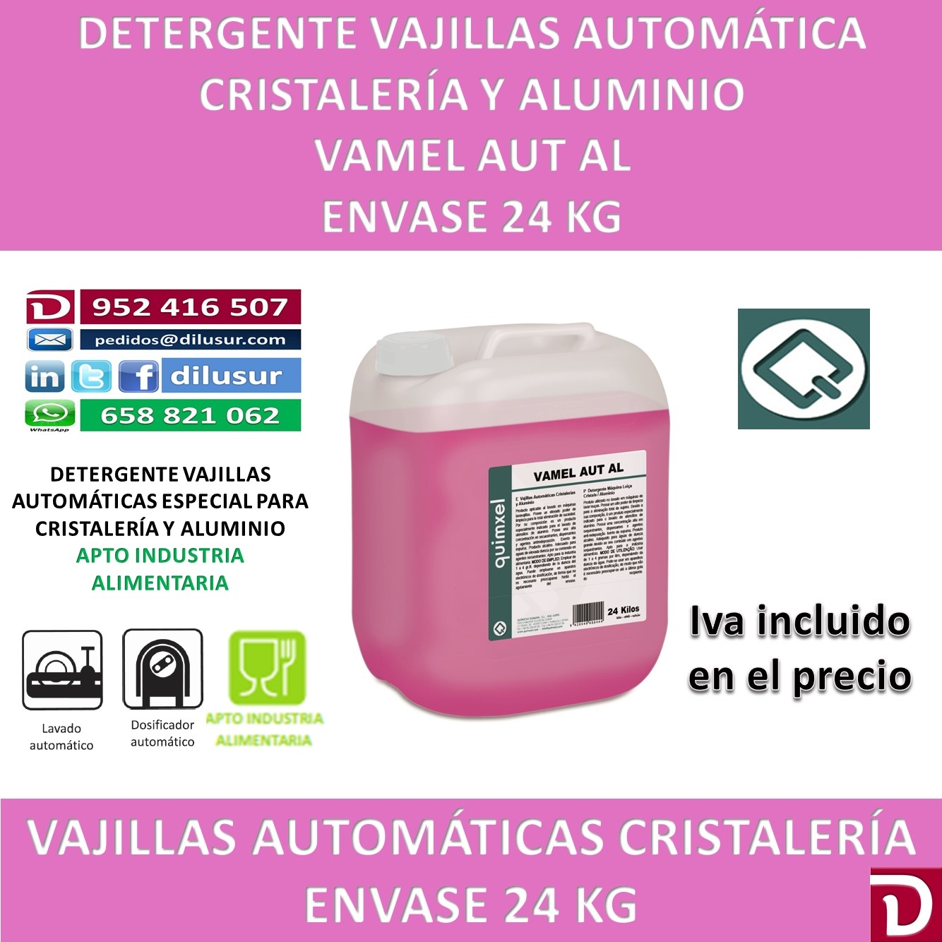 Detergente vajillas automáticas especial para el lavado de cristalería y utensilios de aluminio, de elevado poder de limpieza, de elevado poder secuestrante,dispersante, contiene agentes antiredeposicion. Exento de espuma. Envase 24 kg. Iva incluido
