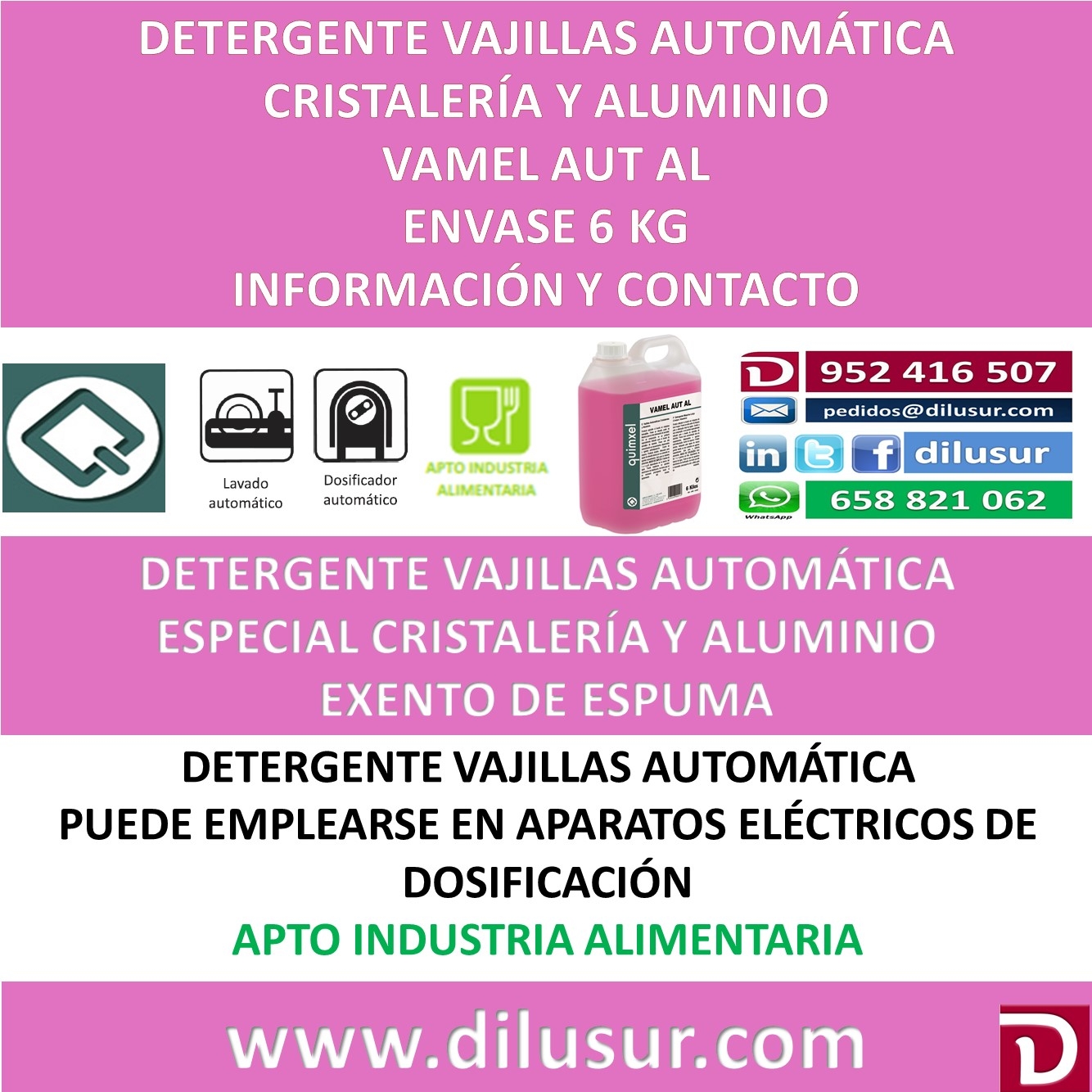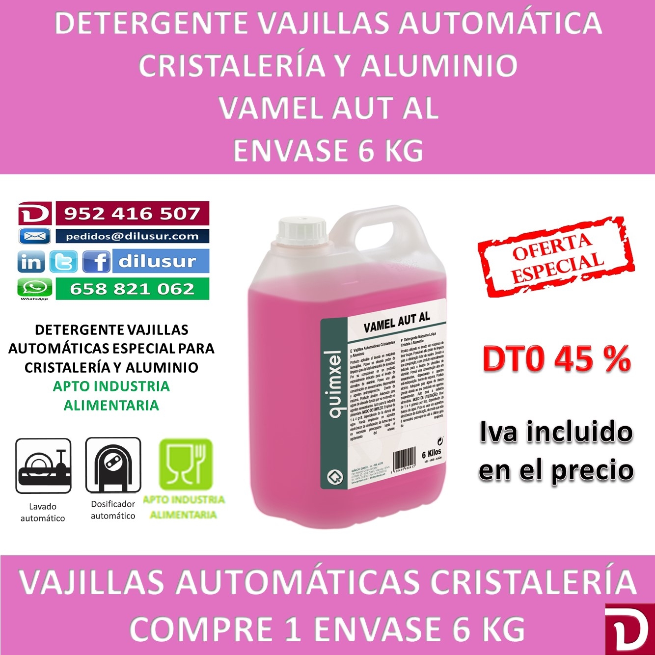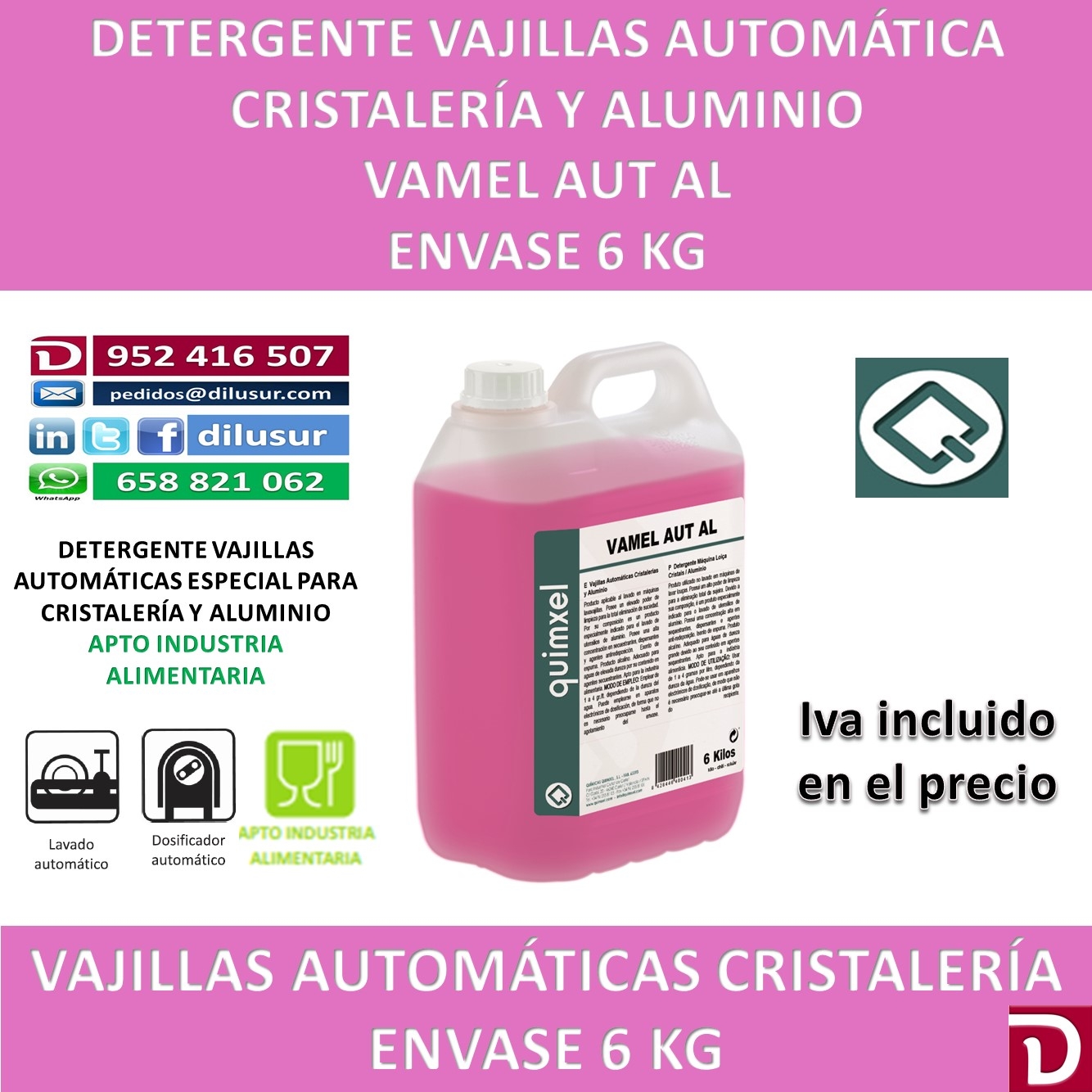 Detergente vajillas automáticas especial para el lavado de cristalería y utensilios de aluminio, de elevado poder de limpieza, de elevado poder secuestrante,dispersante, contiene agentes antiredeposicion. Exento de espuma. Envase 6 kg. Iva incluido