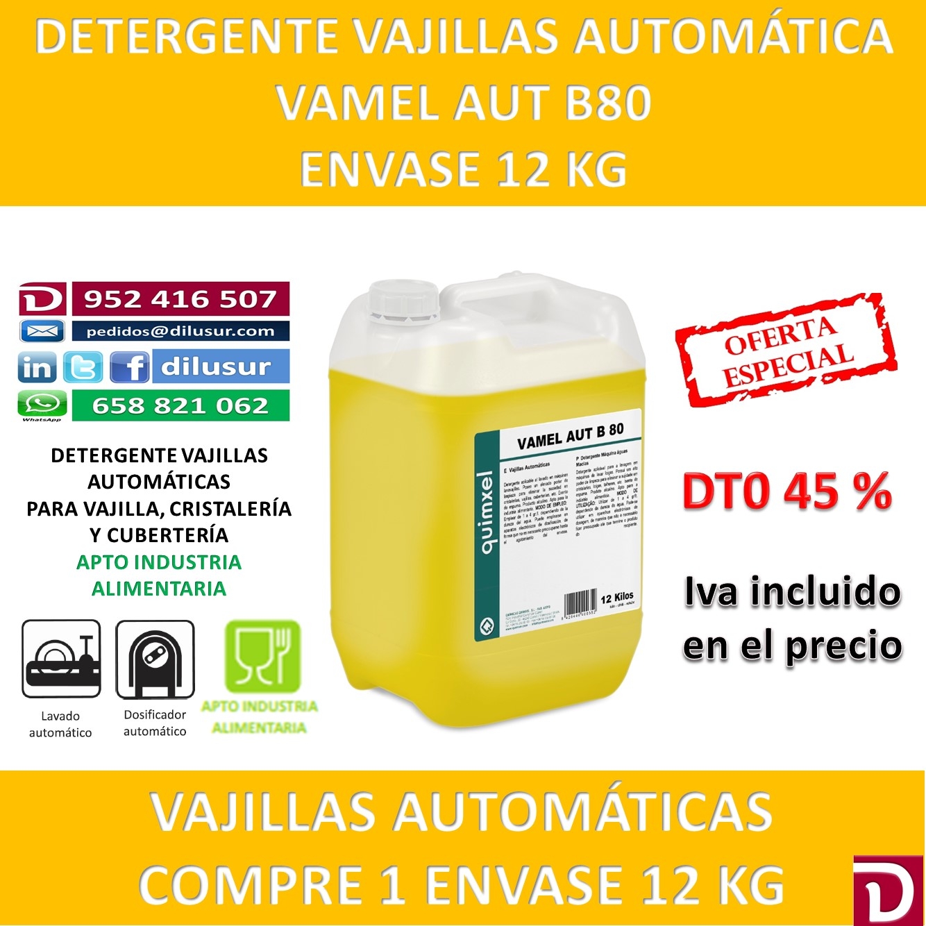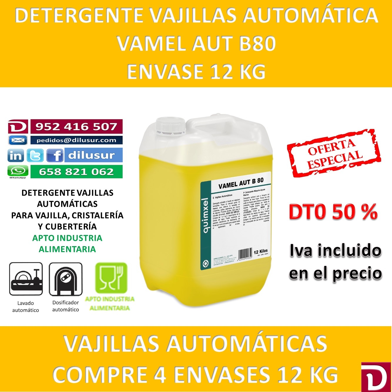Detergente aplicable al lavado en máquinas lavavajillas para vajillas, cristalería y cuberterías de gran efectividad para el sector hosteleria, restauración y catering, Envase 12 kg. Iva incluido. Apto industria alimentaria