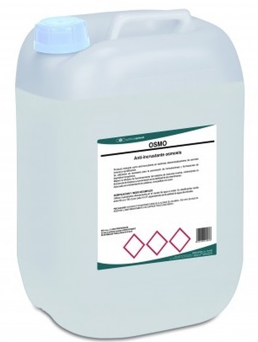 Anti incrustante osmosis, para evitar las incrustaciones y ayuda a la dispersión de sales en el agua. Indicado para tratamientos de aguas en calderas, instalaciones o sistemas de membrana de osmosis. Envase 13 Kg, IVA incluido