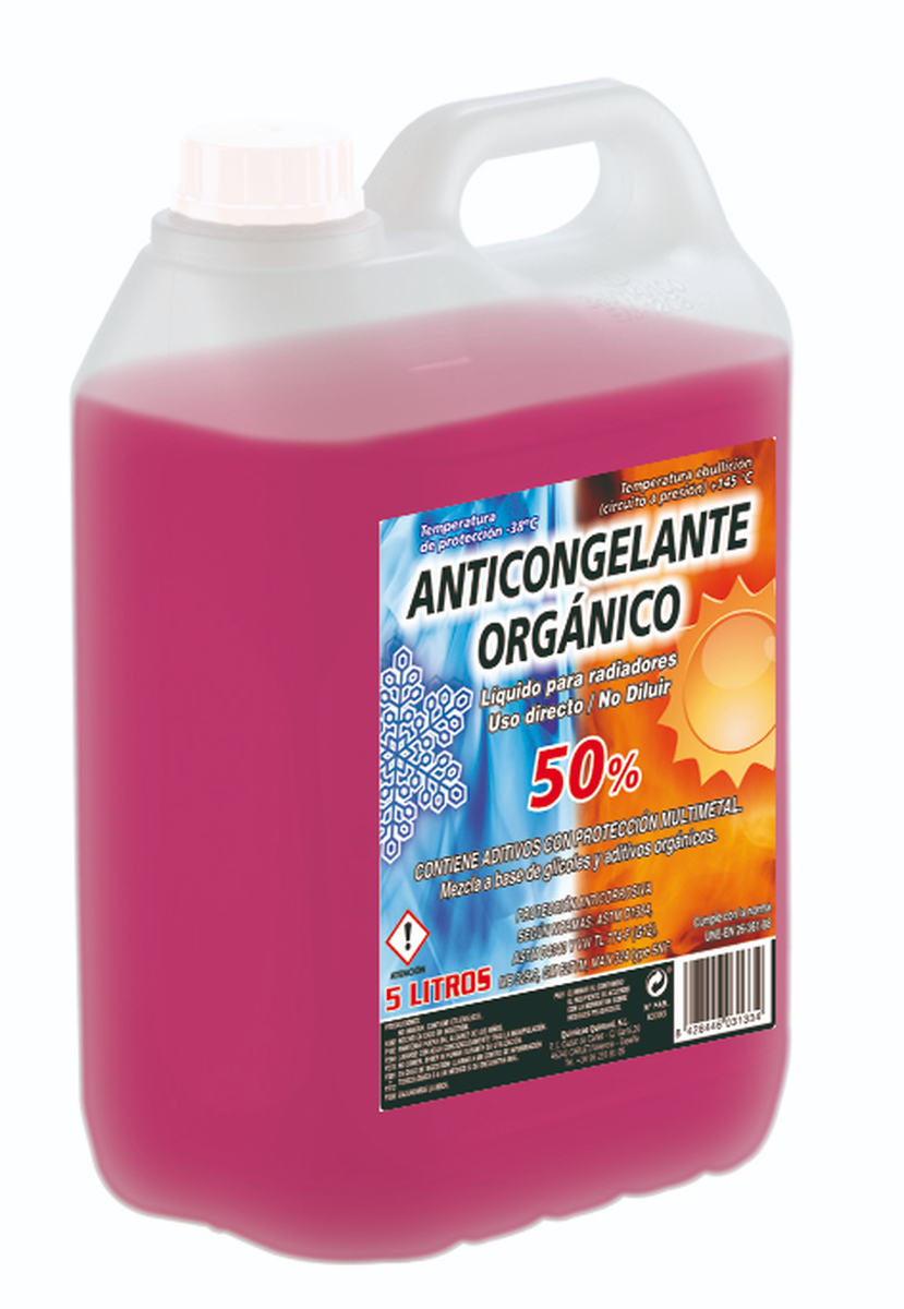 Producto de nueva generación basados en compuestos orgánicos. Es un producto universal para cualquier tipo de instalación de enfriamiento con radiador La nueva tecnología de anticongelantes orgánicos (OAT) proporciona un producto mucho menos tóxico y más biodegradable que los anticongelantes convencionales. Contiene aditivos anticorrosivos, conservantes y antiespumantes que garantizan la adecuada refrigeración y conservación del motor. Eficaz antiebullicionante. Apto para todas las marcas y tipos de vehículo. Contiene anticorrosivos especiales frente aluminio y metales blandos. Cumple con la norma UNE-EN 26-361-88 protección anticorrosiva según normas ASTM D1384, ASTM D4340 y VW TL 774-F(G12+)