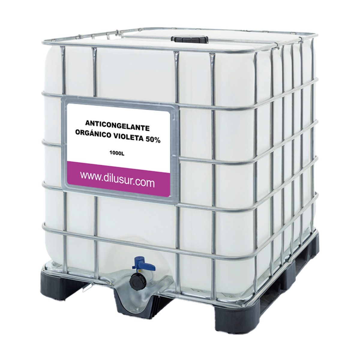 Anticongelante 50% violeta, orgánico G13, de uso universal para todo tipo de vehículos, de uso directo. Libre de nitritos, fosfatos, boratos y silicatos. Contenedor 1000 L