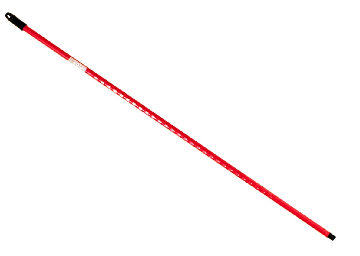 Palo relieve rojo de 140 cm de metal, forrado para escobas, recogedores y utiles de limpieza, De rosca universal. Precio unitario. Iva incluido.