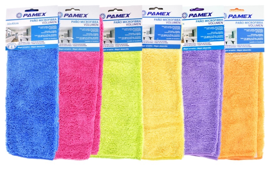 Bayetas de microfibra de colores surtidos de 30 X 40 cm emblistadas. Productos de alta absorción y muy adecuado para la limpieza de supeficies de todo tipo. Producto lavable. Iva incluido en el precio